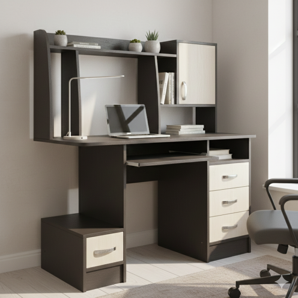 Колір на світлині корпус — дуб венге, фасади — дуб молочний