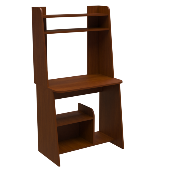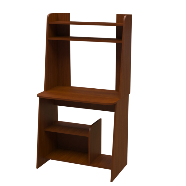 Прямий комп'ютерний стіл з надбудовою, 1500 мм заввишки. Вузький, ширина - 800 мм. Дві полиці по ширині столу розміщені у надбудові. Під стільницею стіл має дві полиці, одна з яких з задньою стінкою. Відсік для системного межує з полицями.