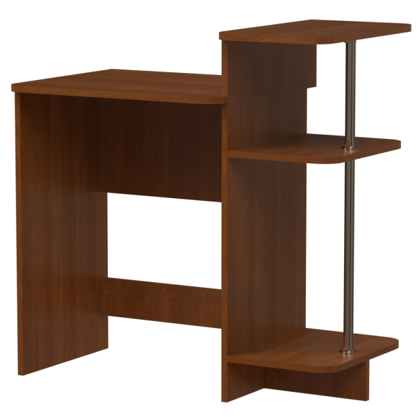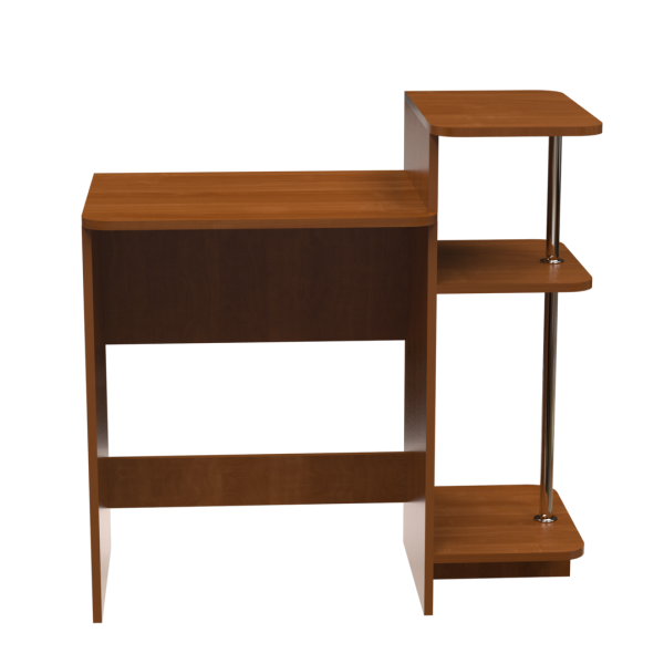 Прямий комп'ютерний стіл, 950 мм завширшки. Три відкриті полиці, між якими металеві хромовані стійки поєднані зі столом за допомогою бокової стінки. Ширина стільниці - 616 мм.