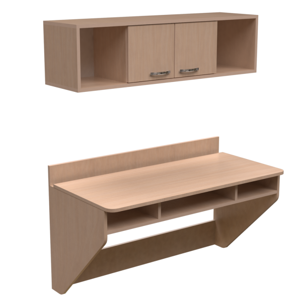 Підвісний комп'ютерний стіл, 1100 мм завширшки. Складається стіл з двох частин: власне стільниця та підвісна шафа. Під стільницею - три полиці, висота - 100 мм, глибина - 450 мм. Симетрична шафа включає дві полиці та дві шафки.