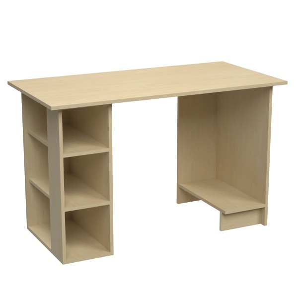 Прямий комп'ютерний стіл з трьома кутовими полицями та кутовою полицею для системного блоку. Ширина стільниці - 1200 мм.